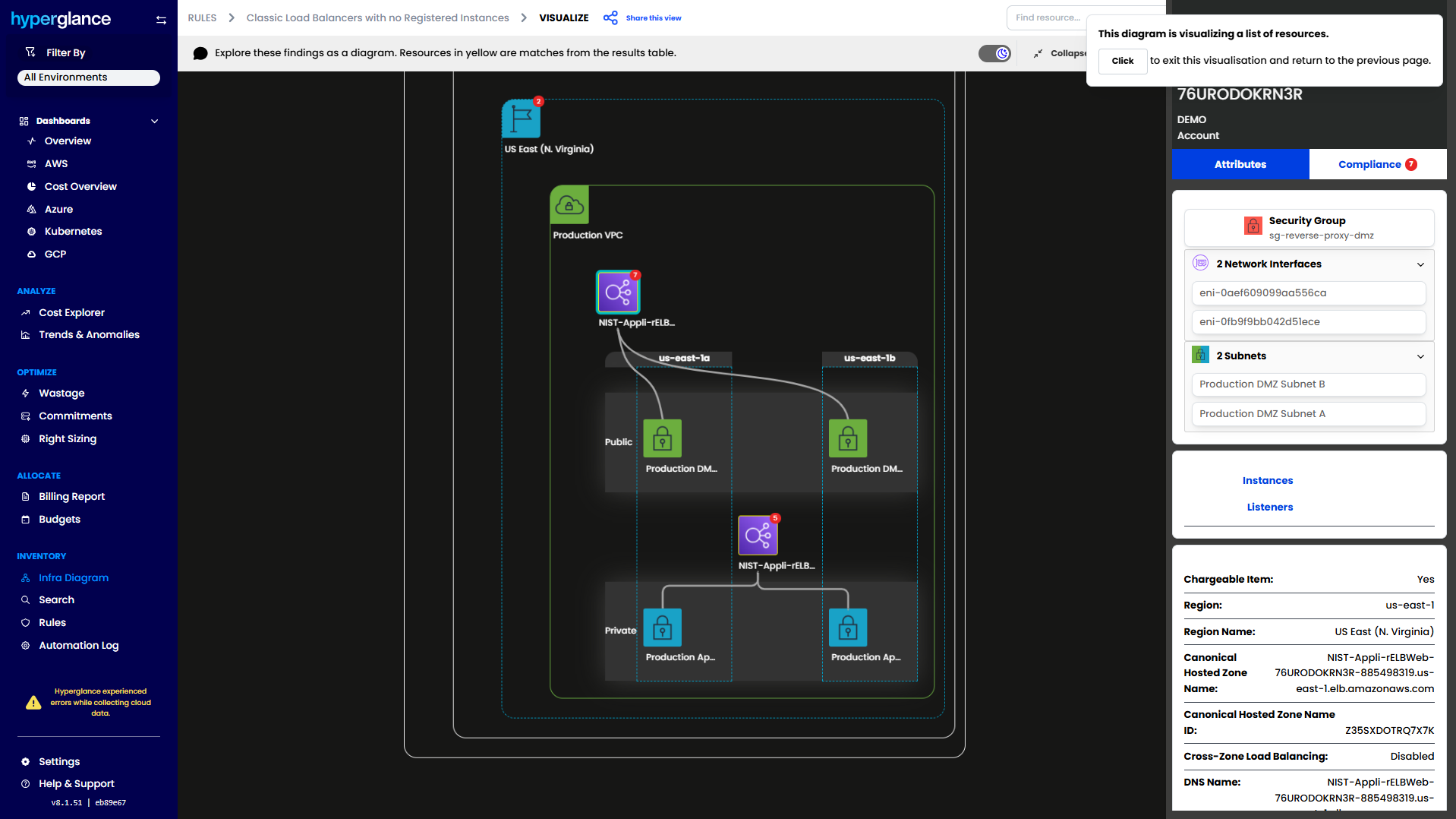 By looking at your cloud map in Hyperglance, these wasteful resources are highlighted in context by overlaying their performance on top of the instance in the cloud architecture, making the cloud architect's job much simpler.