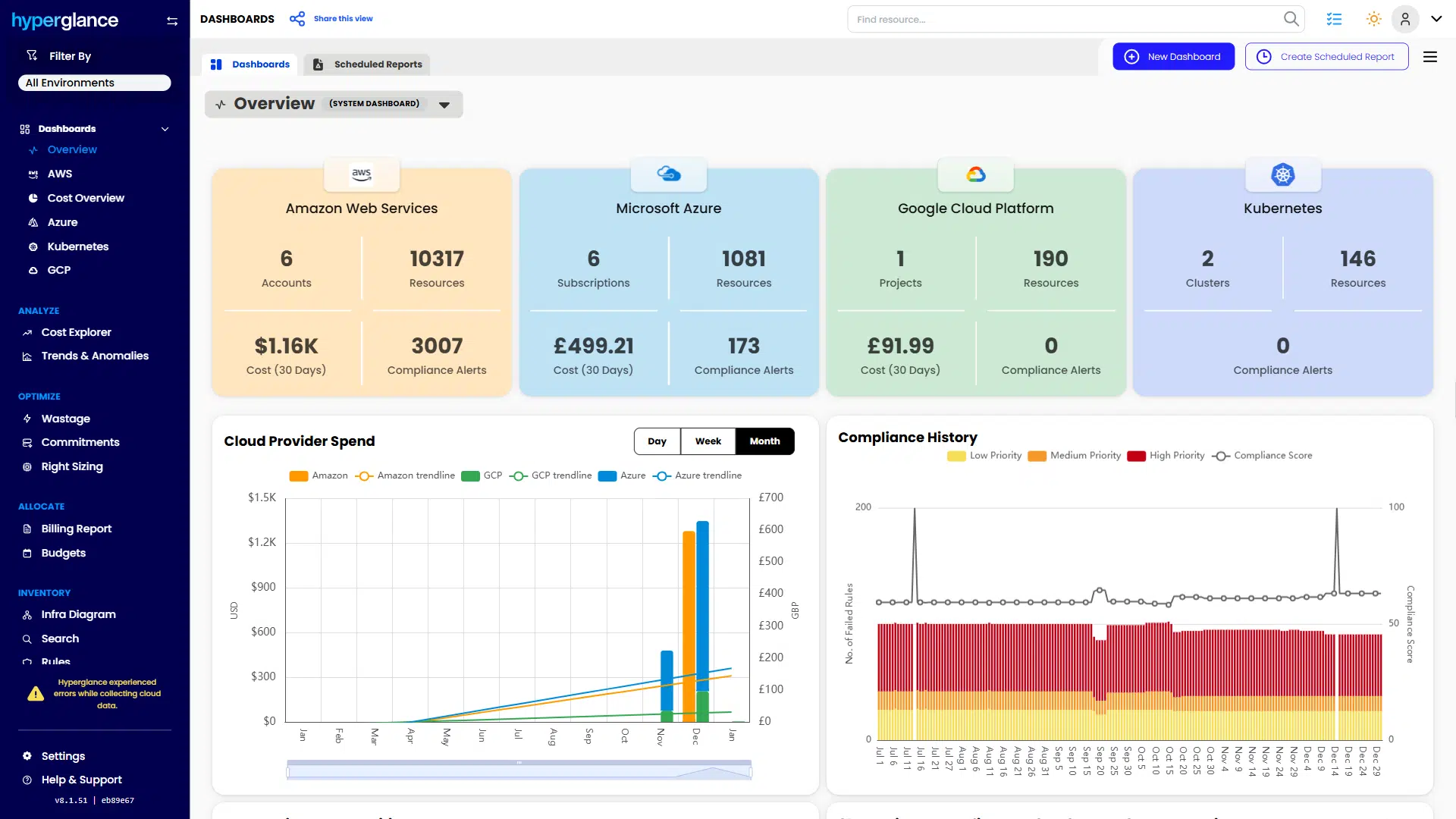 Hyperglance gives FinOps teams, architects, and engineers real-time visibility across AWS, Azure, and GCP — costs, security, and performance in one view.