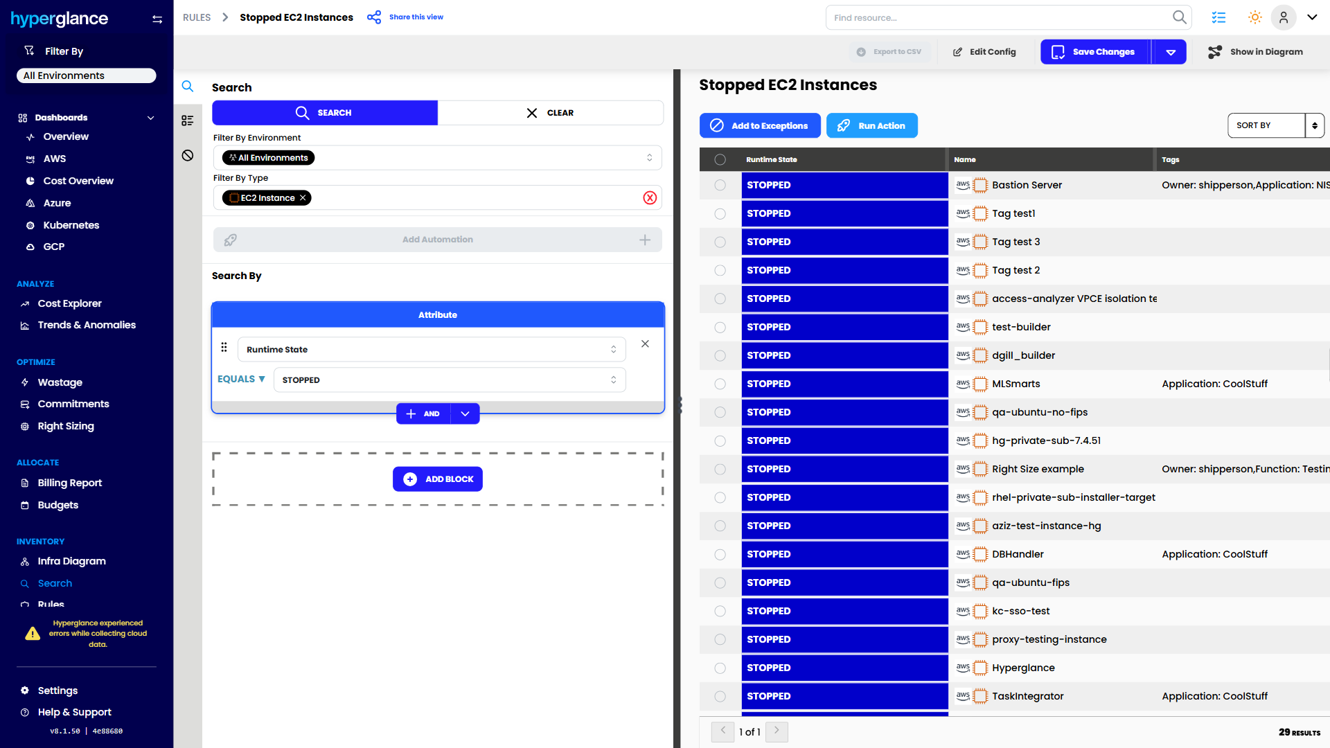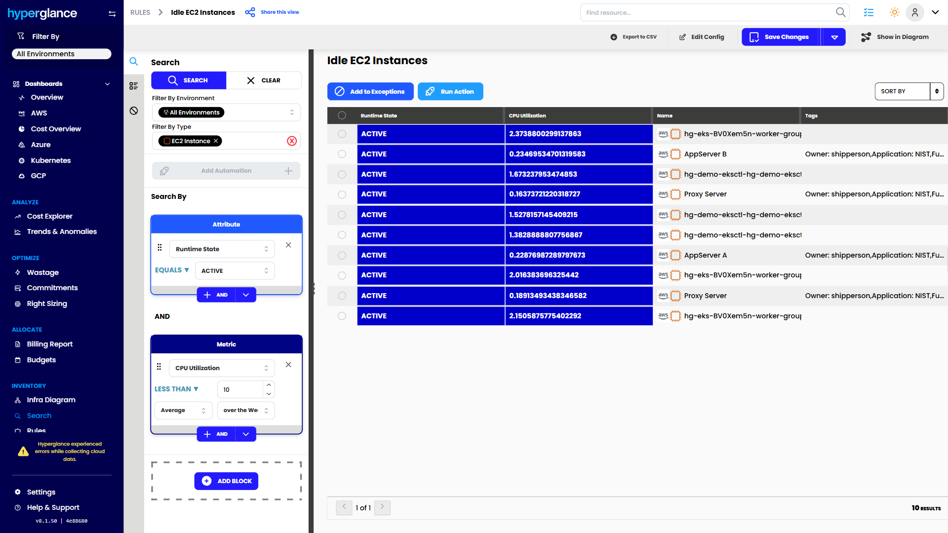 Hyperglance provides a structured way to find and remediate idle EC2 instances without relying on ad hoc scripts or one-off checks.
